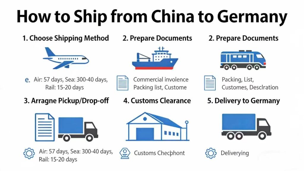 Shipping time from China to Germany depends on multiple factors, including cargo type, transport mode, seasonal demand, and customs clearance. Businesses often evaluate sea freight time from China to Germany, air freight transit time China to Germany, rail freight shipping China to Germany, and express delivery options to meet deadlines efficiently.