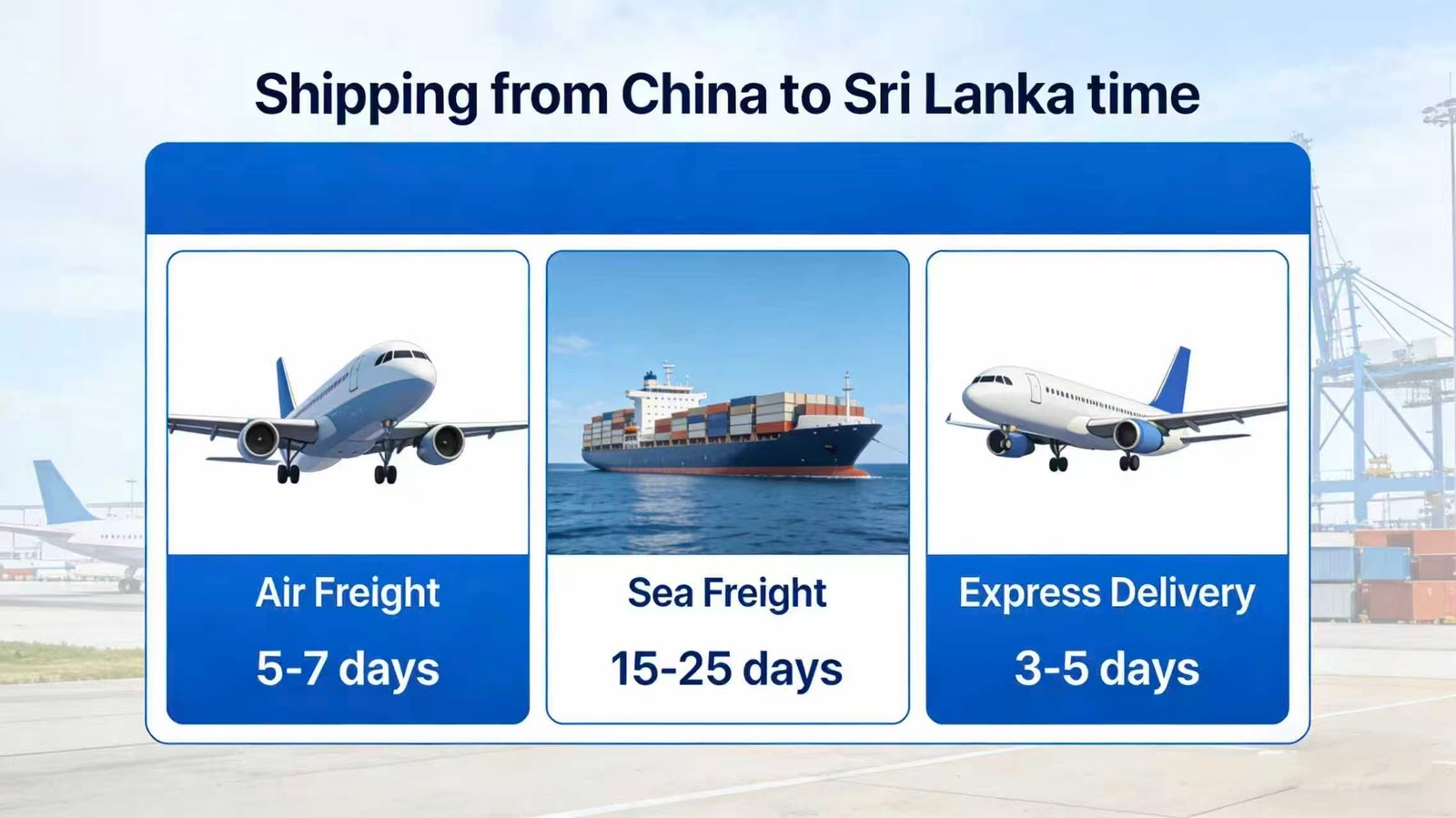 Express services include door‑to‑door pickup, international transit, and final delivery in Sri Lanka, often with real‑time tracking and priority handling. Compared with standard air freight, express shipments usually clear customs more efficiently because carriers handle documentation and compliance checks proactively. The typical transit time for express shipping is 2–4 days, but can vary slightly during peak seasons such as before Chinese New Year or Sri Lankan holidays.